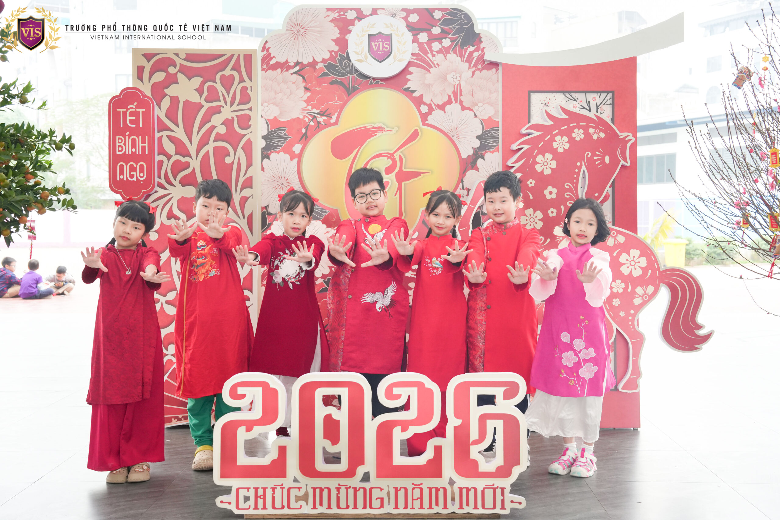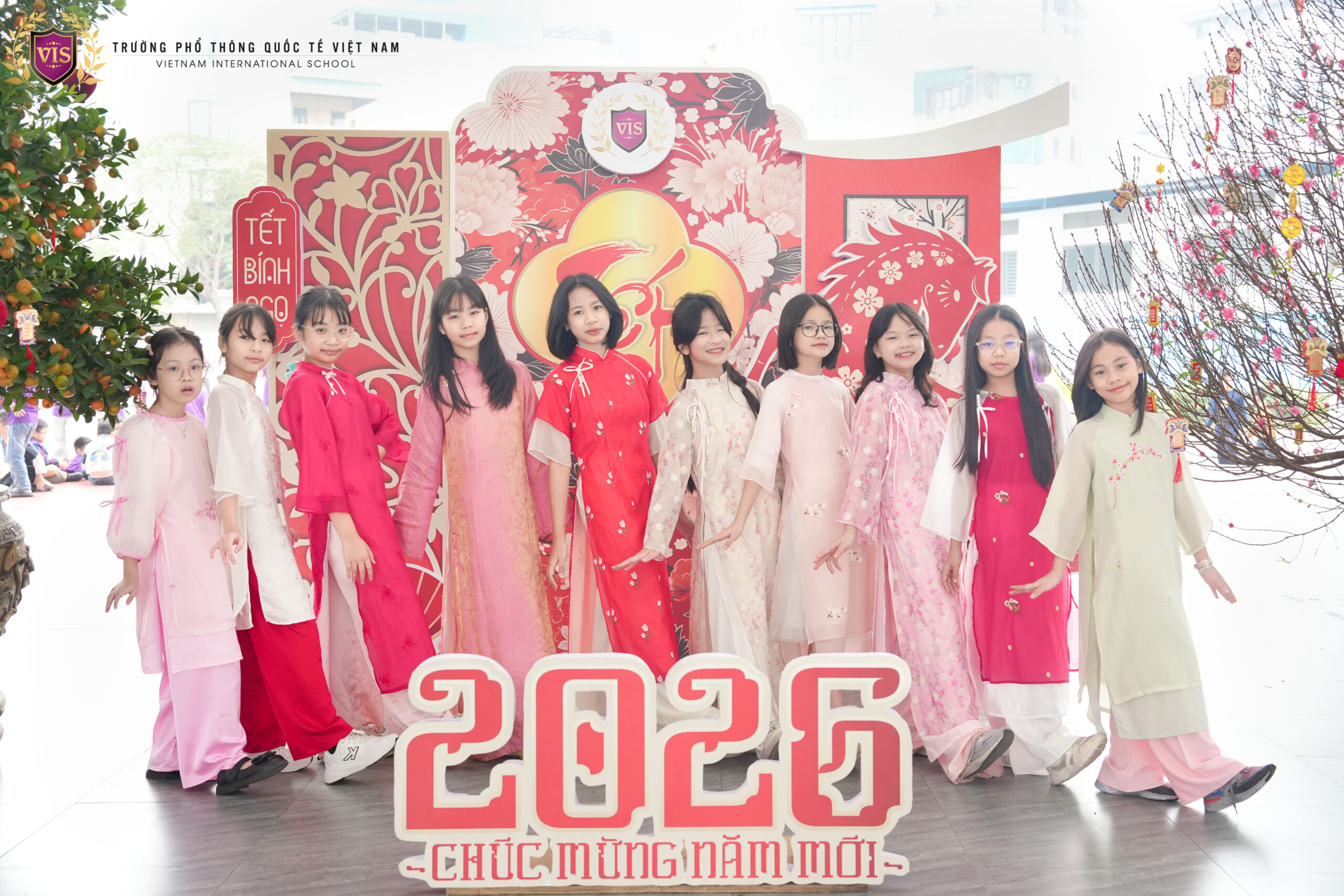 Hôm nay sân trường VIS bỗng dịu dàng hơn hẳn khi các bạn nhỏ cùng nhau diện áo dài đón xuân. Những nụ cười trong veo, ánh mắt háo hức, từng bước chân nhỏ xinh như mang mùa Tết đến thật gần.