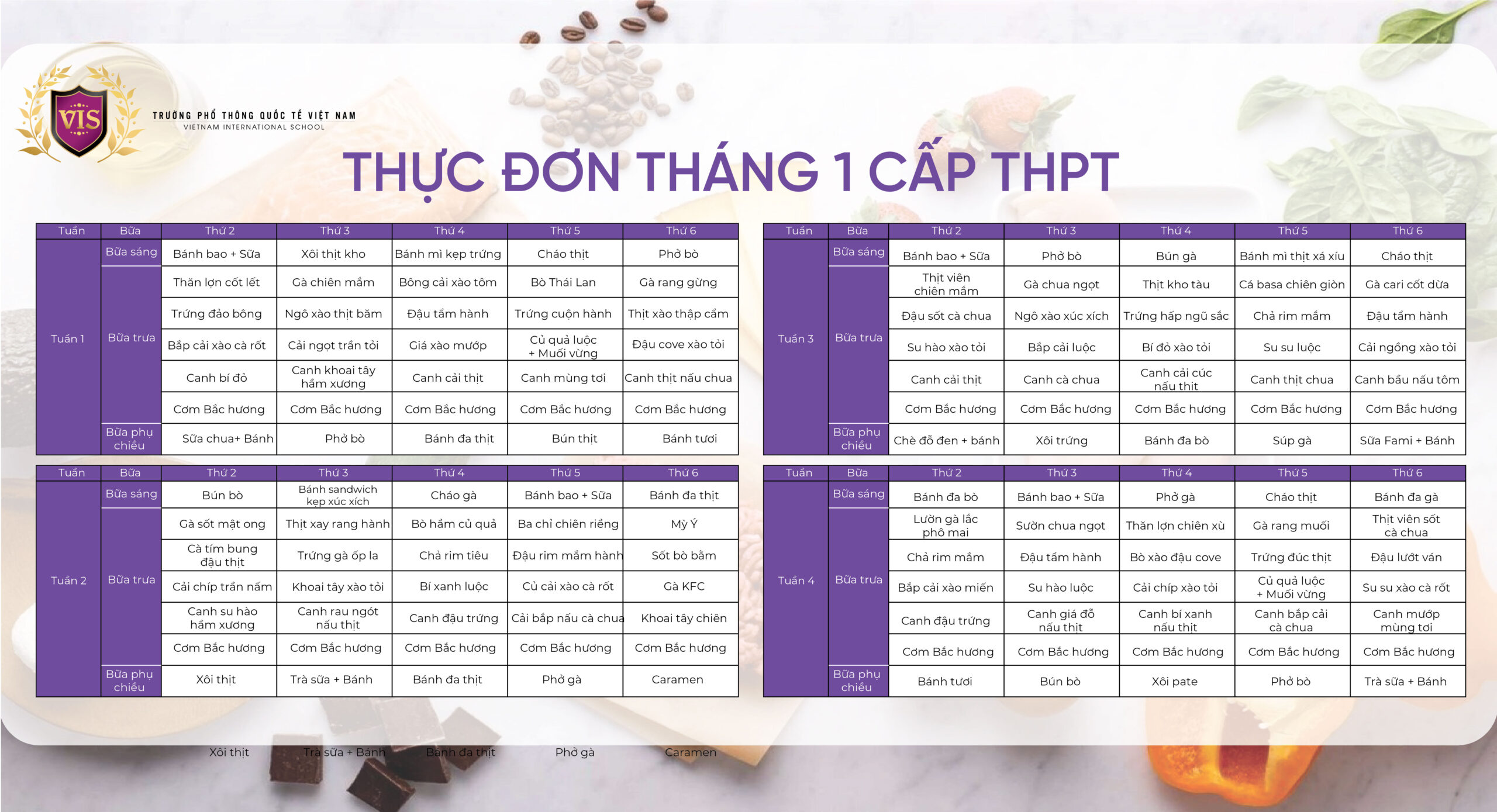 - THỰC ĐƠN THÁNG 01/2026 CẤP THPT