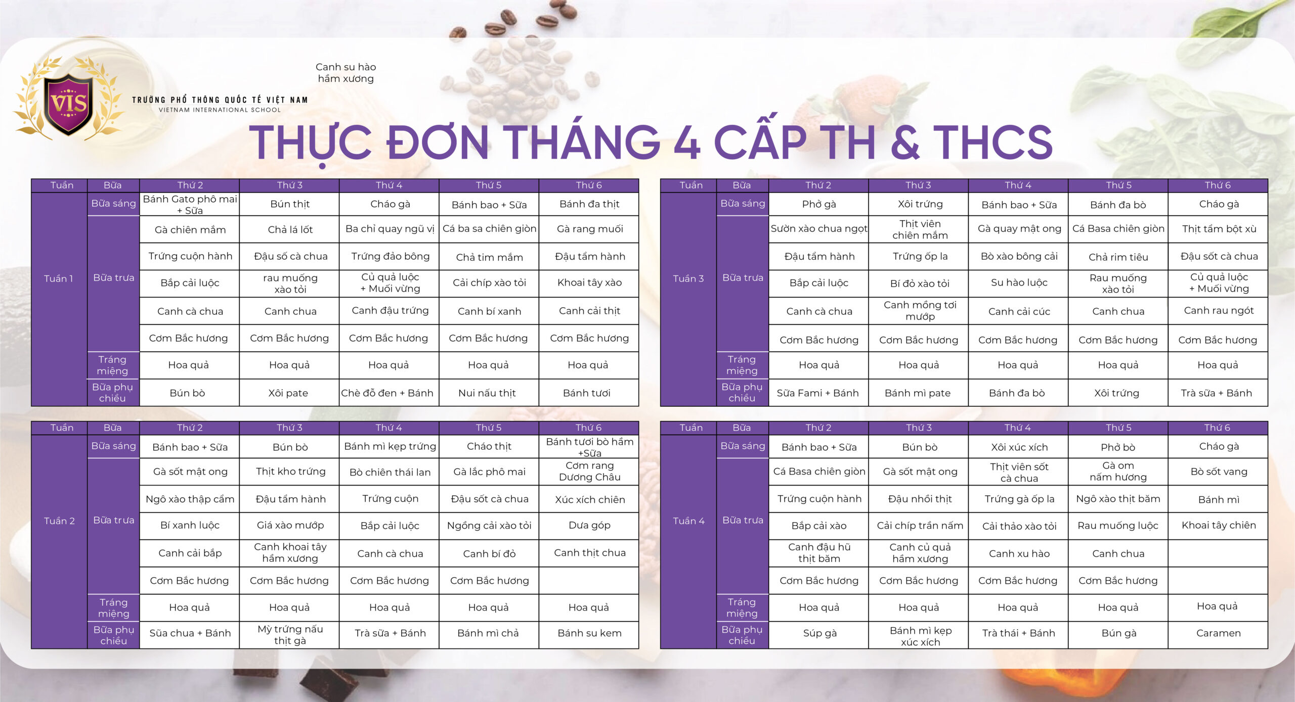 - THỰC ĐƠN THÁNG 04/2026 CẤP TH – THCS