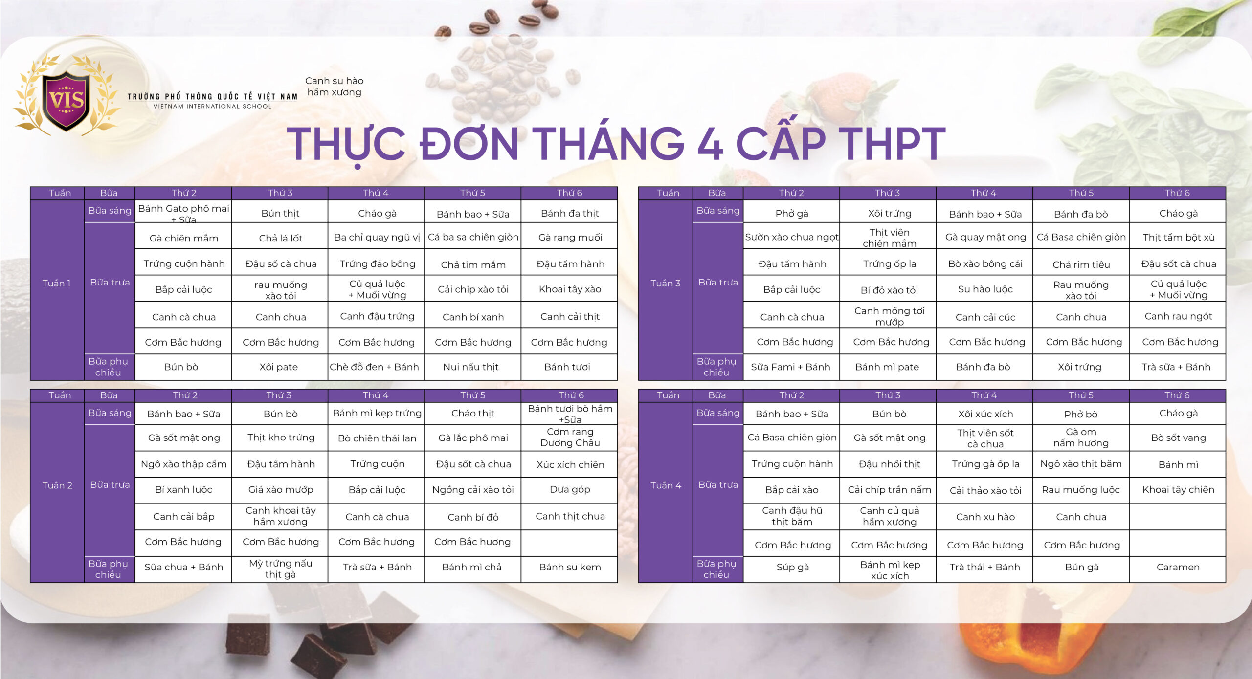 - THỰC ĐƠN THÁNG 04/2026 CẤP THPT